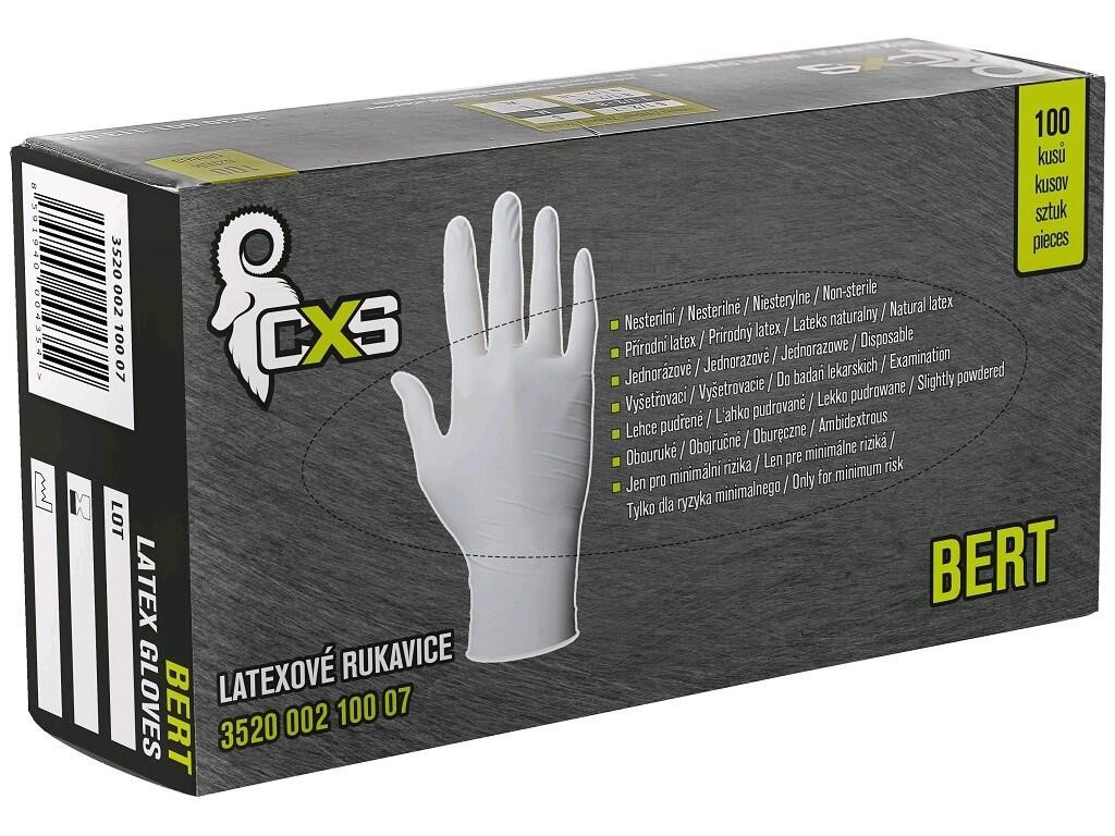 CS, Rukavice BERT, vyšetřovací, latexové, bílé, 100ks, vel.8 (M)