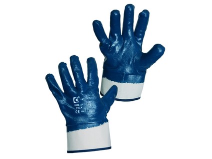 Rukavice máčené v nitrilu s pevnou manžetou. Doporučené použití: olejnaté prostředí, práce s PHM. Odvětví: strojírenství, zemědělství, čerpací stanice.
