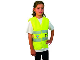 Dětská výstražná vesta s horizontálními reflexními pásky, zapínání na suchý zip.