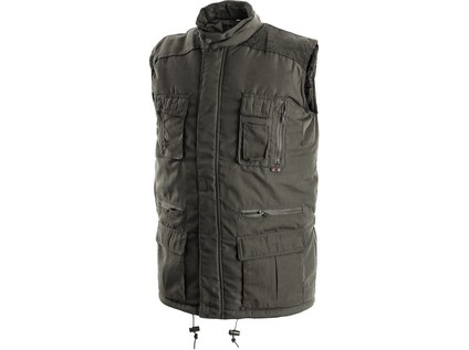 Zateplená, ramena a límec prošitý manšestrem, pružné stažení průramku, možnost stažení vesty v pase, 14 kapes - z toho 3 kapsy uvnitř vesty.
