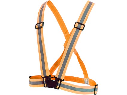 Elastický kříž, šíře 4 cm, 1,3 cm reflexní pásky, nastavitelná šířka i délka pásků ma sponu. Materiál: 100% polyester.