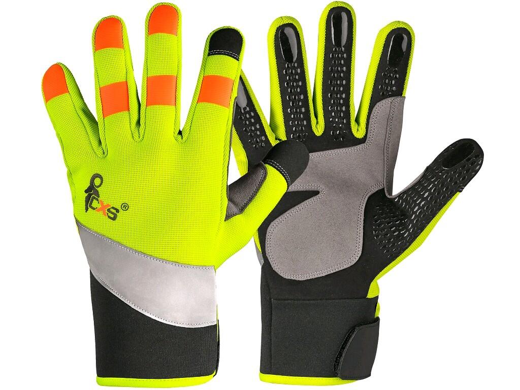 CXS, Rukavice kombinované BENSON, žluto-černé, výstražné doplňky, vel.10