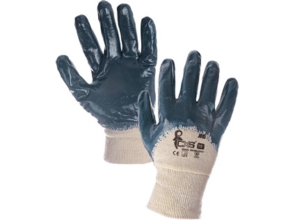 Rukavice polomáčené v modrém nitrilu s úpletovou manžetou. Doporučené použití: olejnaté prostředí, práce s PHM. Odvětví: strojírenství, zemědělství, čerpací stanice.