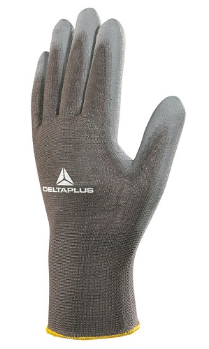 100% polyester. Polyuretanový povlak na dlaních a koncích prstů. Hustota úpletu 13.