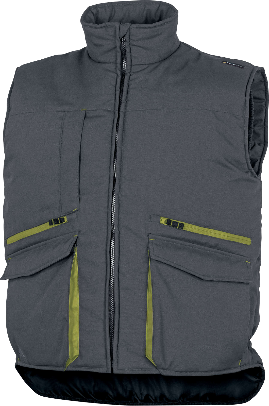 Zateplená s mnoha kapsami (řada PANOSTYLE). Zapínání na zip krytý lištou. Elastická na bocích a zadní straně. 9 kapes.
