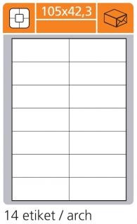Samolepící etikety na arších pro použití v laserových a inkoustových tiskárnách a kopírovacích strojích. Materiály se vyznačují minimální prašností a zajišťují kvalitní a čistý potisk s ostrými konturami. Standarně jsou etikety dodávány v barvě bílé.