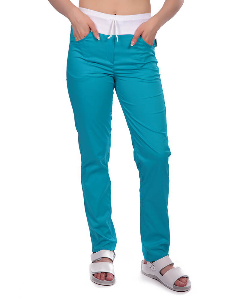 Kalhoty dám.prac.pas.,2450,MATYLDA, pas úplet s tkanicí,BA/PES Elas.165,VS168,tyrkys active/bílý |