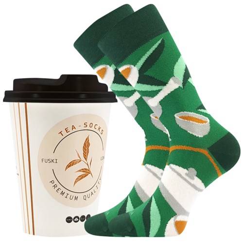 Neobvyklé ponožky Lonka® TEA jsou díky vysokému podílu česané bavlny příjemné na omak, přátelské k pokožce a dobře pohlcují vlhkost. Klasické ponožky mají řetízkovanou špici, která nikde netlačí, zabraňuje tvorbě puchýřů a zajišťuje tak pohodlí a komfort při nošení. Pique lem je jemný, nohu nestahuje a neškrtí. Dámské a pánské ponožky s motivem ČAJ najdete originálně zabalené ve vtipném nápojovém kelímku. Balení obsahuje 1 pár.