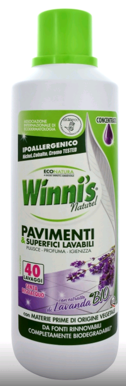 Hypoalergenní čisticí prostředek na podlahy Winni´s Pavimenti Lavanda s výtažkem z levandulových květů v bio kvalitě je vhodný pro údržbu všech omyvatelných ploch a podlah. Jako jsou plovoucí podlahy, dlažba, laminát, parkety, přírodní kámen, linoleum atd. Jeho vůně je velmi pronikavá a příjemná a díky tomu váš domov zůstane voňavě svěží delší dobu.