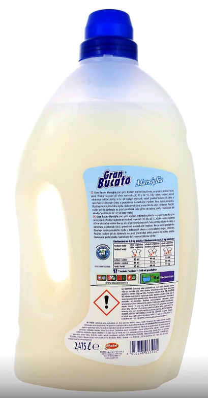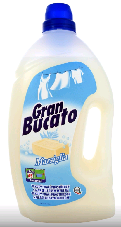 Gran Bucato Marsiglia s marseillským mýdlem má univerzální použití při praní bílého i barevného prádla.