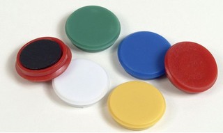 Barevné magnety na nástěnky a tabule. Průměr 24 mm. Balení obsahuje 10 ks v mixu barev.