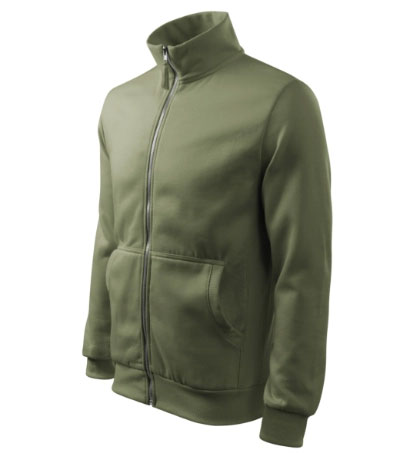 Kvalitní stylová mikina s límcem z žebrového úpletu. Celopropínací. Hlavicový rukáv. Vnitřní strana počesaná. Boční díly, spodní lem, manžety rukávů a lemy kapes ze žebrového úpletu. Dvě přední kapsy. Vhodná pro potisk a výšivku.