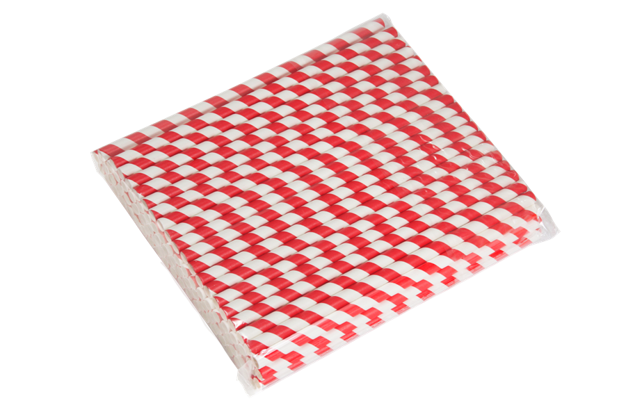 Papírové brčko červeno - bílé proužky