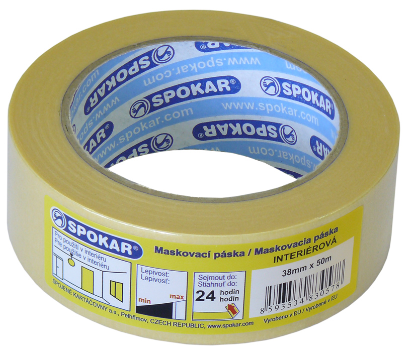 Mírně krepový papír, střední lepivost, pro vnitřní použití do 60°C, maximální doba nalepení 24 hod.