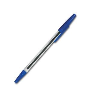 Transparentní jednorázové kuličkové pero, víčko v barvě náplně.