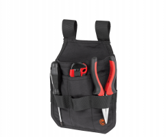 Přídavná kapsa na nářadí, pevný materiál, větší kapsa na hřebíky, nýty, šrouby a jiné ostré předměty. 3 menší kapsy na tužku, skládací metr, šroubovák aj. Poutka na zavěšení nářadí (kladivo, kleště, šroubovák aj.)