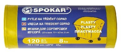Pytle na tříděný odpad 120 l, 70x105 cm, žluté, 8 ks