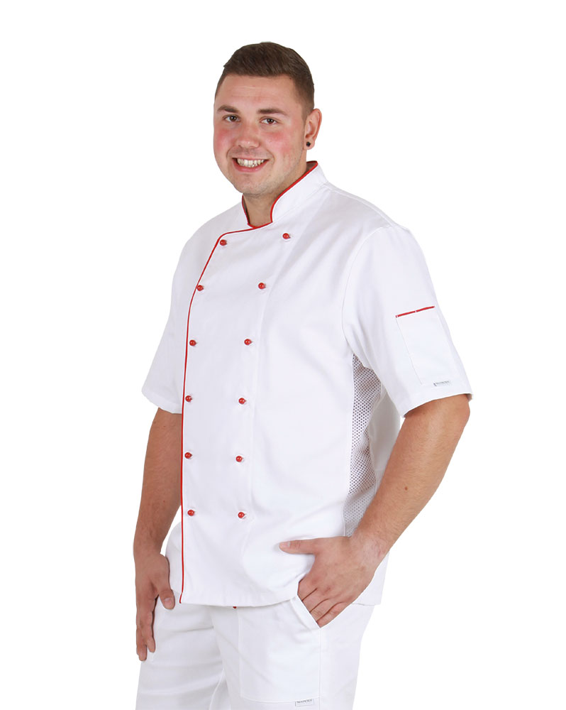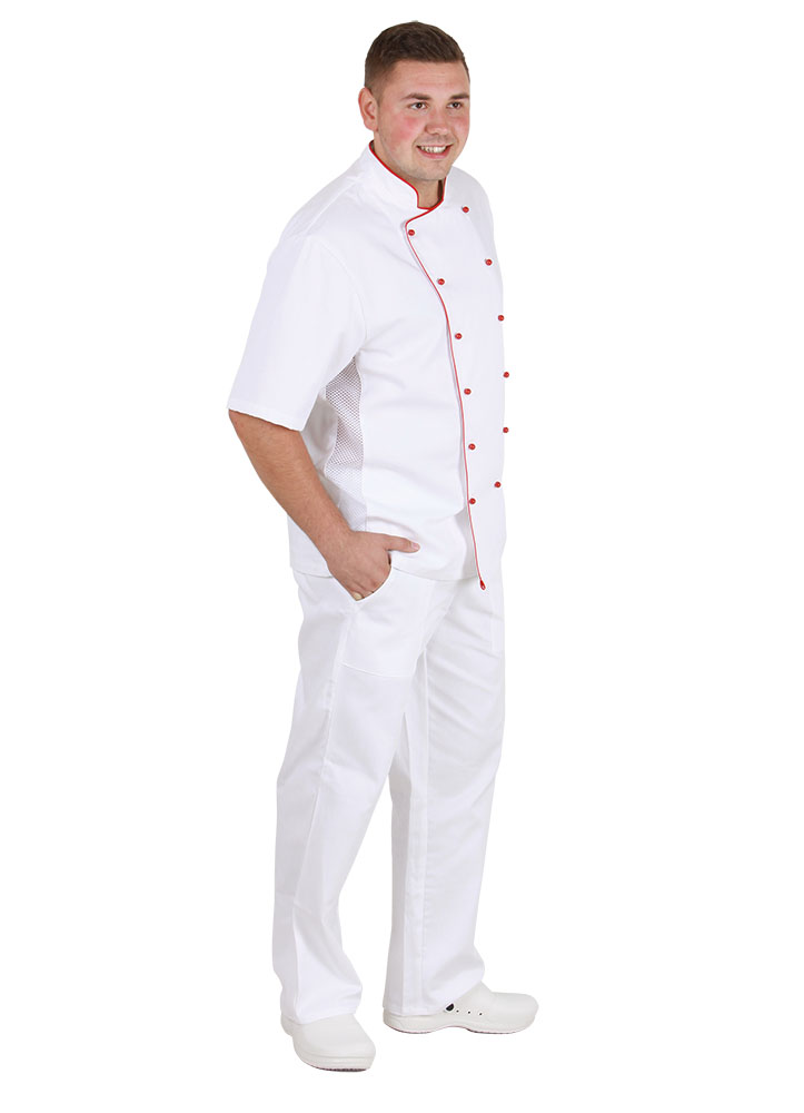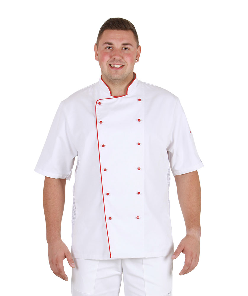 Rondon pán. dvouřadý, kr.rukáv, 3401 ZDENO, rond.knofl., síto v bocích,BA/PES 220, VS182 bílá/červen |
