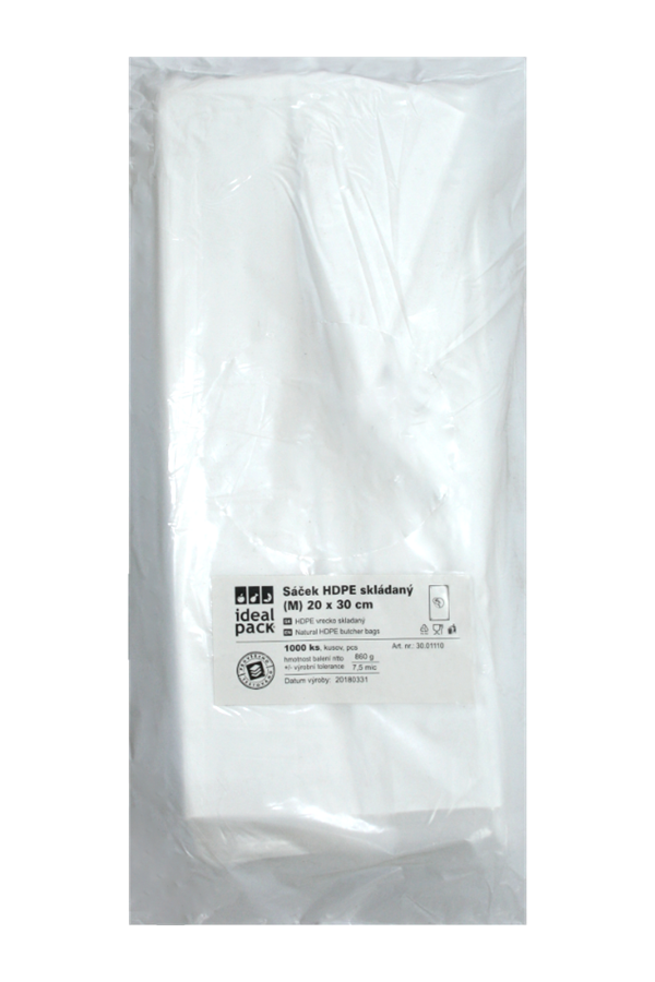 Sáček skládaný, 20 x 30 cm (12+8x30), 1000ks/bal, vel. M (30.01110)