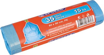 Sáčky extra pevné zatahovací na odpad 35 l, 50 x 60 cm, 15 ks modré