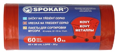 Sáčky na tříděný odpad 60 l, 60 x 80 cm, červený, 10 ks