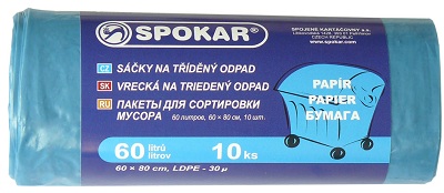 Sáčky na tříděný odpad 60 l, 60 x 80 cm, modré, 10 ks
