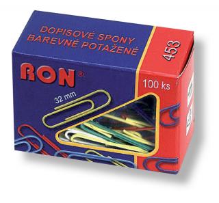 Dopisové spony potažené barevným plastem, v krabičce 100 ks. Cena je uvedená za 100 ks.
