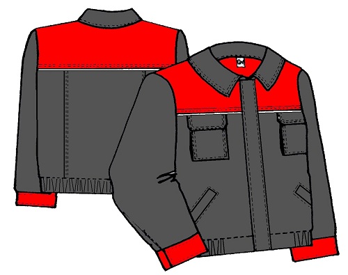 Blůza s límcem na krytý zip. Barevná sedla s bílou výpustkou. Náprsní kapsy kazetové s patkou, boční kapsy váčkové. Zadní díl s protizáhyby. Rukávy do manžet. Pásek s pruženkou. Zapínání na suchý zip. Materiál: 100%Ba,kepr,245g/m2.