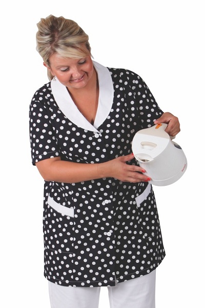 Materiál: 100%Ba,plátno,140g/m2. Barva: černobílý puntík/bílá.