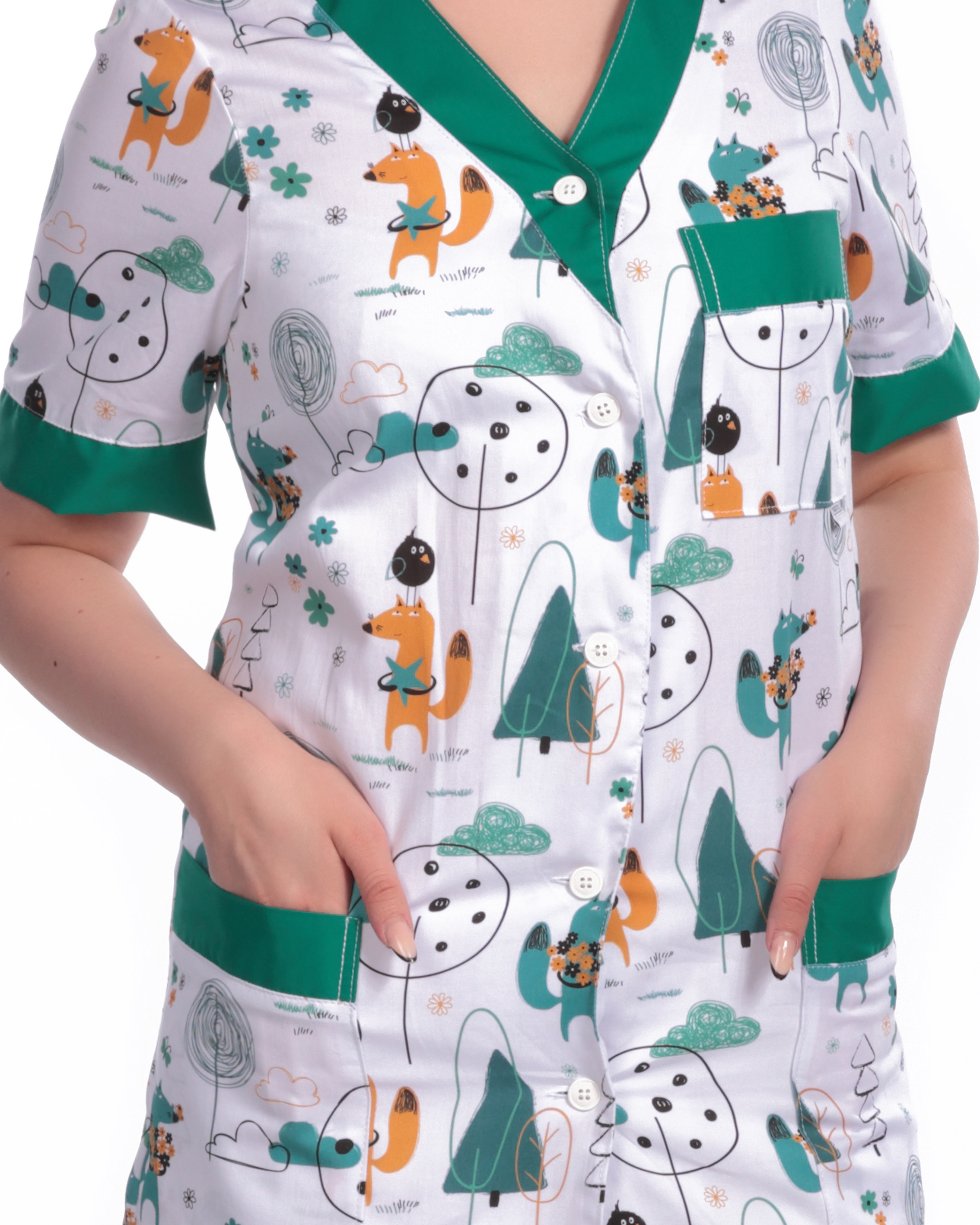 TDX Halena dámská propínací CECILIE, BA, VS168, vzor lišky/tyrkys/tmavě zelená |