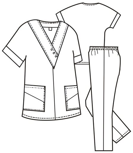 TDX, Dámská halena sesterská, VS170, zelená tyrkys/bílá Halena přes hlavu se špičatým výstřihem. Barevně kombinovaná. Krátké kimono rukávy s manžetou. Členěné boční kapsy. 100%Ba,plátno,140g/m2. Kombinace: zelená; tyrkys/bílá