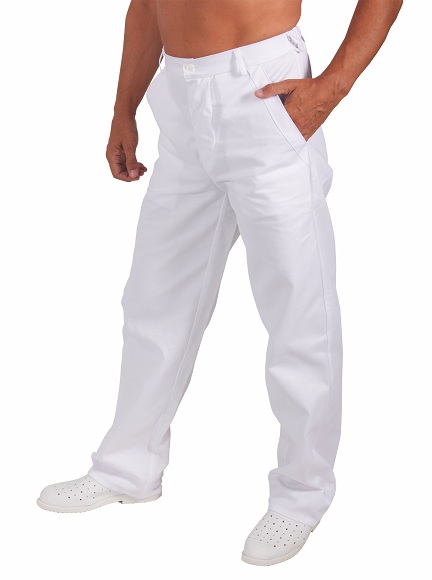 Kalhoty do pásku s poutk, pruženka a sedlo v zadním díle. Přední kapsy a zadní kapsa s lištou. Rozpark na knoflíky. Materiál: 100% bavlna,kepr,245g/m2. Velikosti: pracovní 40-64.
