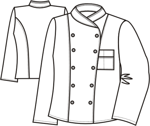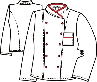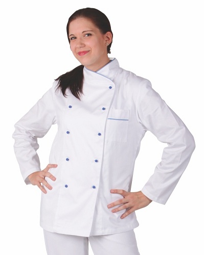 TDX, Dámský rondon dvouřadý, VS170, bílá/červený lem Dámský dvouřadý rondon. Zapínání na knoflíky. Dlouhý rukáv bez manžet. Barevné lemování. Stojáček a náprsní kapsa. Materiál: 100%Ba,kepr,200g/m2.