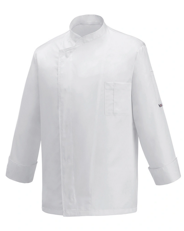 Kuchařský rondon Ottavio s dlouhým rukávem je vyroben z 100% lehkého mikrovlákna s gramáží 130 g/m2, které je mimořádně měkké, příjemné na dotek a zároveň velmi praktické pro náročné provozy. Vnitřní strana má jemně broušený sametový povrch („hand peach inside“) pro maximální komfort, takže se rondon příjemně nosí i po celodenní směně. Materiál je IRON FREE, takže se téměř nemačká a není nutné ho žehlit. Díky vodoodpudivé úpravě kapky vody stékají po povrchu a rondon rychle schne. Pokud chcete tento efekt prodloužit, doporučuje se občasné přežehlení. Zadní část je vyrobena z prodyšného materiálu Air Plus, který zajišťuje lepší cirkulaci vzduchu a udržuje komfort i při vyšších teplotách v kuchyni. Výsledkem je lehký, funkční a hygienický rondon, který kombinuje pohodlí, moderní technologie a profesionální vzhled.