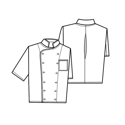 Pánský dvouřadý rondon. Zapínání na knoflíky. Krátký rukáv s manžetou. Náprsní kapsa. Barevné lemování. Materiál: 100% bavlna, kepr, 200g/m2.