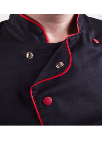 TDX Rondon pánský dvouřadý, BA, krátký rukáv, VS182, černý/červený lem - TD041682050W907_02.jpg TDX Rondon pánský dvouřadý, BA, krátký rukáv, VS182, černý/červený lem - Pánský kuchařský rondon TD0416 - detail TDX Rondon pánský dvouřadý, BA, krátký rukáv, VS182, černý/červený lem - Pánský kuchařský rondon TD0416 - detail