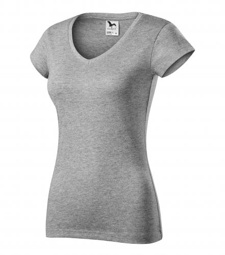 Tričko dámské Fit v-neck 162 - XS-XXL, tmavě šedý melír |