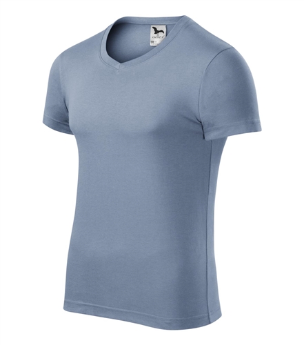 Tričko pánské Slim fit v-neck 146 - S-XXL, denim