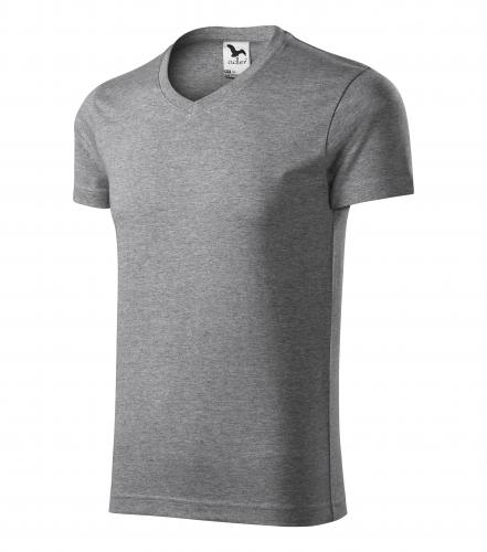 Tričko pánské Slim fit v-neck 146 - S-XXL, tmavě šedý melír
