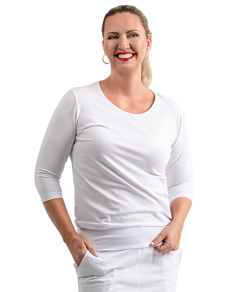 Triko dám.prac.z úpletu,6008, AMANDA,v délce do pásku,VS168,3/4 délka ruk., BA/Elas 175,bílý |