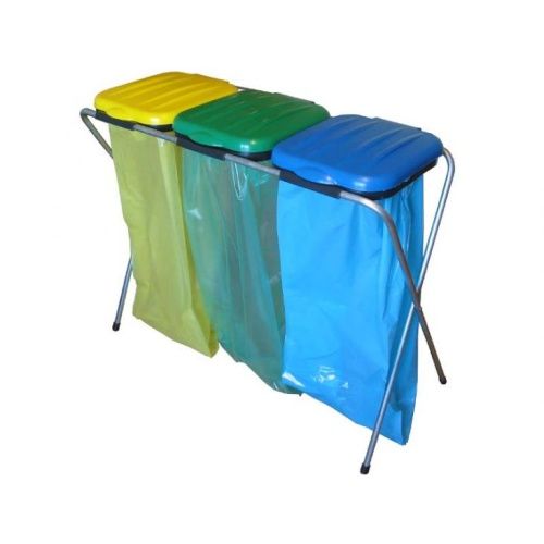Víko a rámeček na pytel jsou vyrobeny z plastového materiálu., Konstrukce stojanů je vyrobena z pozinkovaných trubek., Standardní řada troj-stojanů s barevně odlišenými víky.,...
