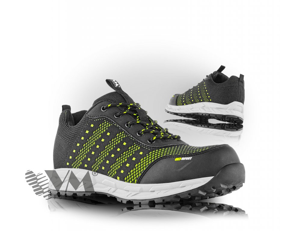 svršek pletený, oděruvzdorný textil, RECYKLOVANÝ podšívka laminovaná prodyšná textilie MESH vkládací stélka HI-POLY - anatomicky tvarovaná, z lehčené polyuretanové pěny, potažená textilií MESH, antistatická podešev EVA/RUBBER - lepená konstrukce velikost 39 - 48 norma ČSN EN ISO 20345:2012 provedení S1P SRA - s plastovou tužinkou a kevlarovou planžetou