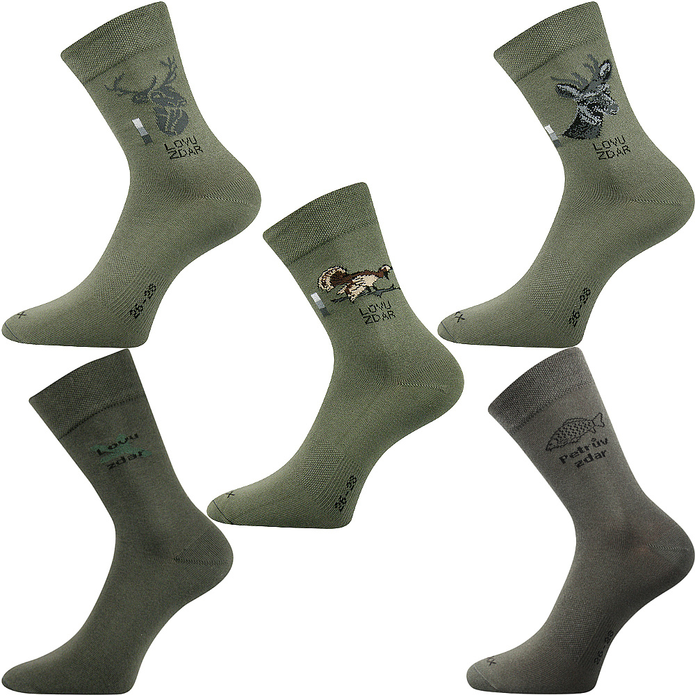 pánské ponožky vhodné pro myslivce a rybáře, jemný svěr lemu, vysoký odvod potu, bandáže proti posunu v botě, teplotní třída: A