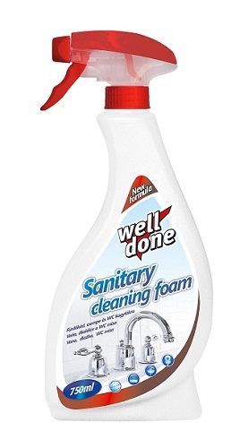 Pěnový čisticí prostředek určený na všechny druhy sanitární techniky: vany, obklady, dlažby, umyvadla, WC. Čistící pěna odstraňuje plíseň, vodní kámen a zářivě čistí a okamžitě účinkuje.