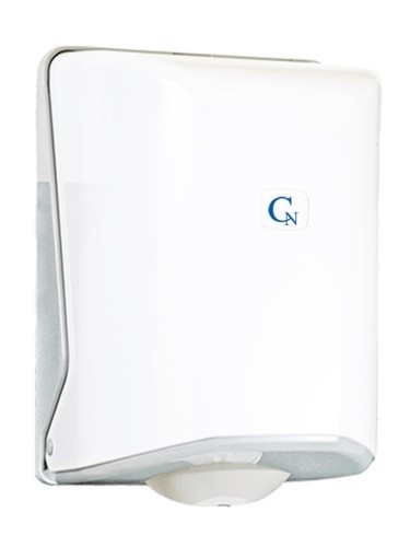 Rozměry hloubka, šířka, výška: 210x220x310 mm Nástěnný zásobník na papírové ručníky v roli o rozměru : pr. 20x20cm odvíjené středem přes průvlak. Ten zabezpečuje dělení ručníku na jednotlivé útržky, pro správkou funkci musí mít role vhodnou gramáž i perforaci. Je vhodný do provozů s větší spotřebou papírových utěrek, kde pro snížení spotřeby je třeba zajistit jejich dělení na jednotlivé útržky. Vyroben je z bílého ABS plastu se světle šedou základnou. Lze montovat pouze na vruty.