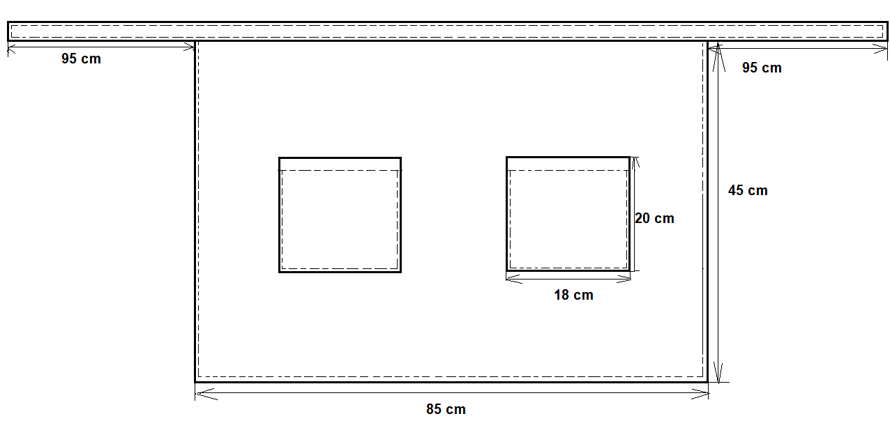 Obepínací zástěra do pasu délka 45 cm šířka 85 cm. V pase je všitý pásek ,který je prošitý po obvodu. V bočním švu a v délce je zástěra začištěna 1 na 1 cm. Dvě nakládané boční kapsy jsou našité jenojehlou zapošité do obdelníku. Vázačky jsou dlouhé 95cm na každou stranu.