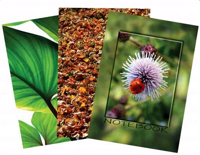 áznamní kniha lepená, 100 listů. Různé motivy laminovaných desek.