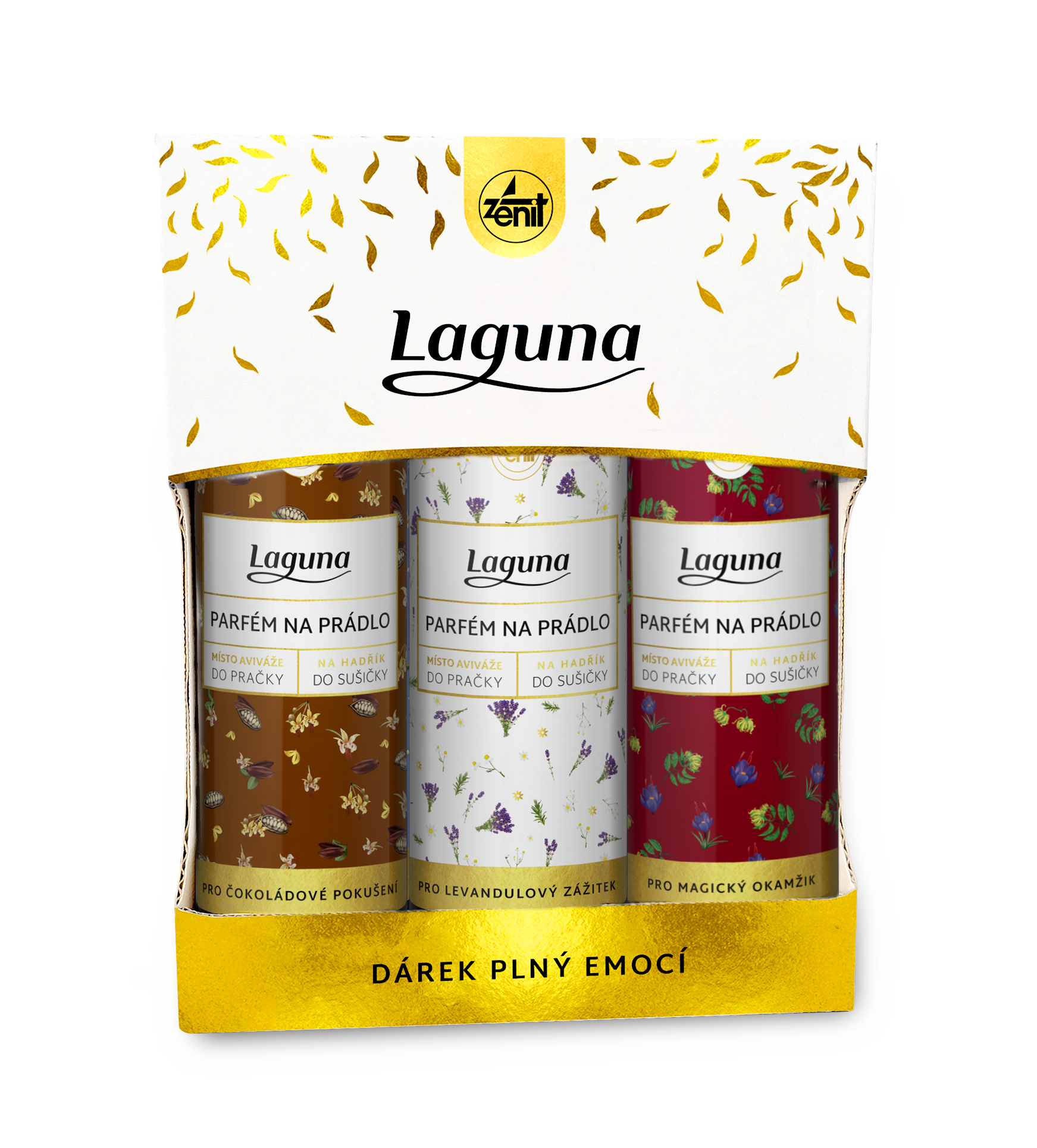 Chceme Vám nabídnout ten intenzivní pocit vůně, který u nás milujeme po každém praní. Chcete měnit vůni na prádlo dle své momentální nálady? Není problém ! Proto Vám v dárkovém balení přinášíme 3 podmanivé vůně na prádlo, které můžete střídat dle své nálady. A aby se vůně nepřebíjely s parfemací Vašeho pracího gelu, vyvinuli jsme pro Vás Laguna prací gel bez parfému, který naleznete také na našem eshopu.